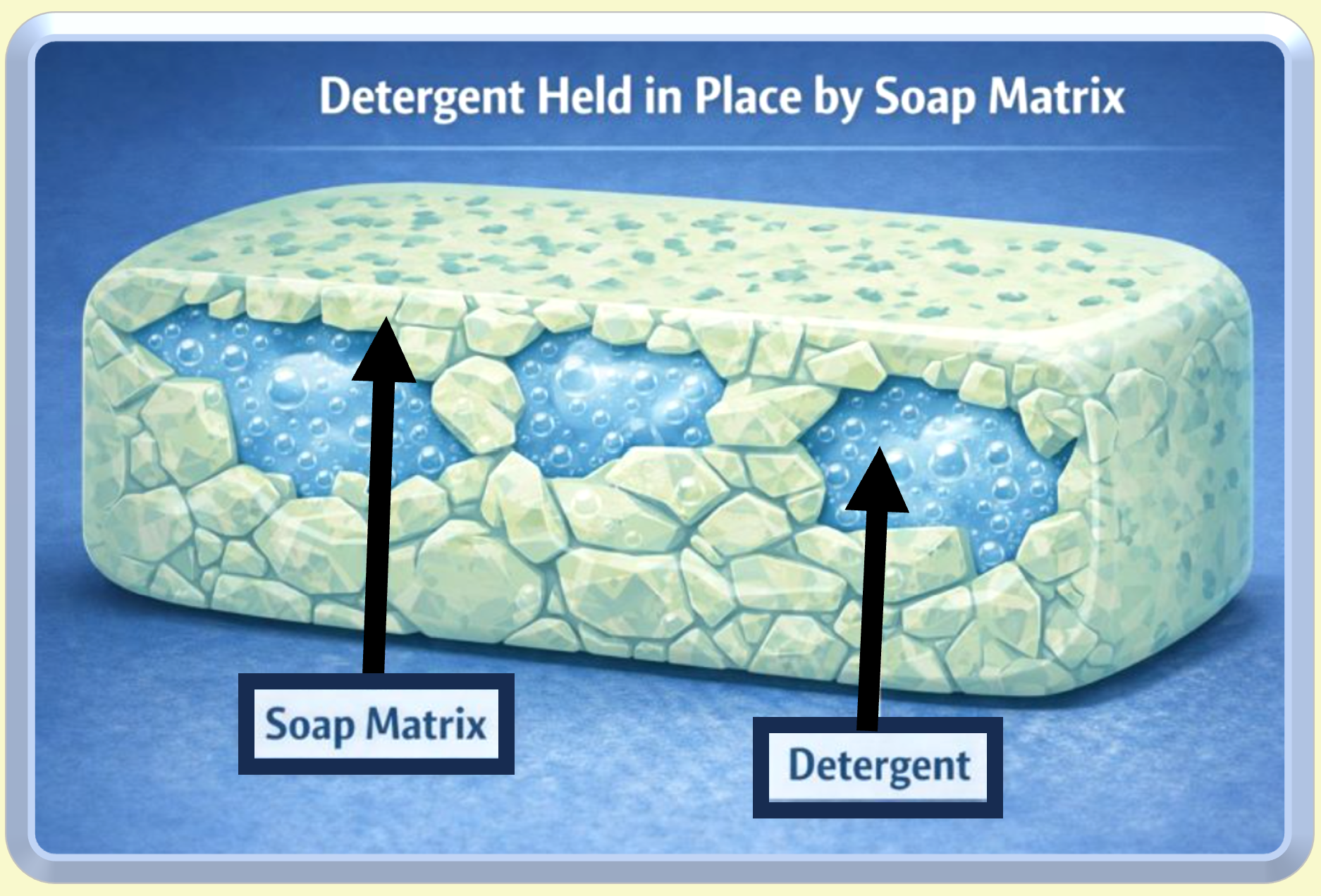 Most importantly, this soap matrix acts as the physical scaffolding of the bar.
