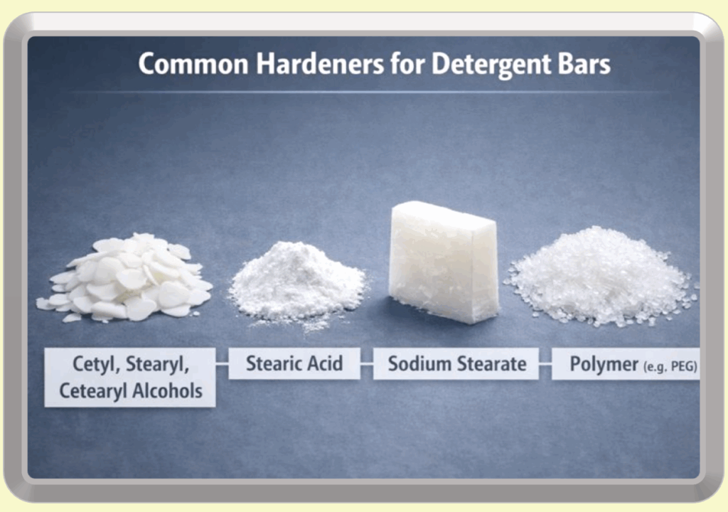 Full syndet bars require entirely different binders because synthetic detergents do not form a rigid, self-supporting solid on their own. Unlike soap, which naturally crystallizes into a hard structural matrix, detergents must be mechanically held together using waxes, fatty alcohols, or polymers. In these engineered systems, glycerin—while beneficial in true soap—is often reduced or removed because its strong attraction to water softens the bar, disrupts structure, and offers no functional necessity for cleansing.