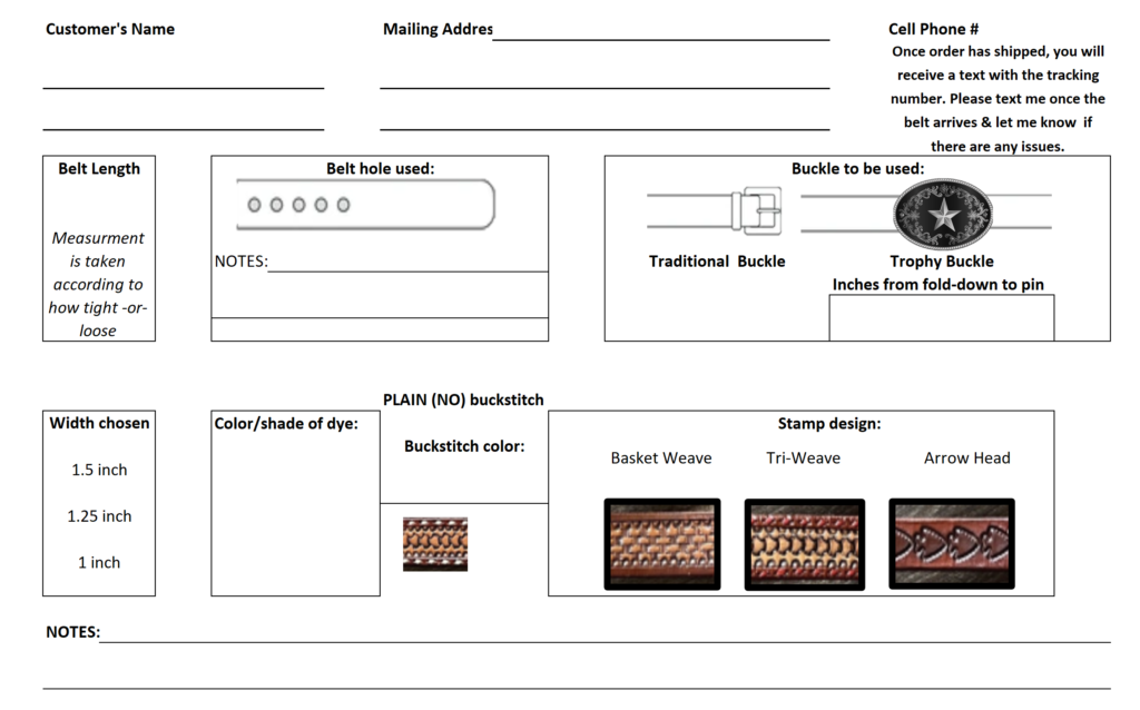 Belts are designed to take a traditional buckle, so if you have a “trophy” buckle or plan to purchase one, this will require additional material for the length of your belt.