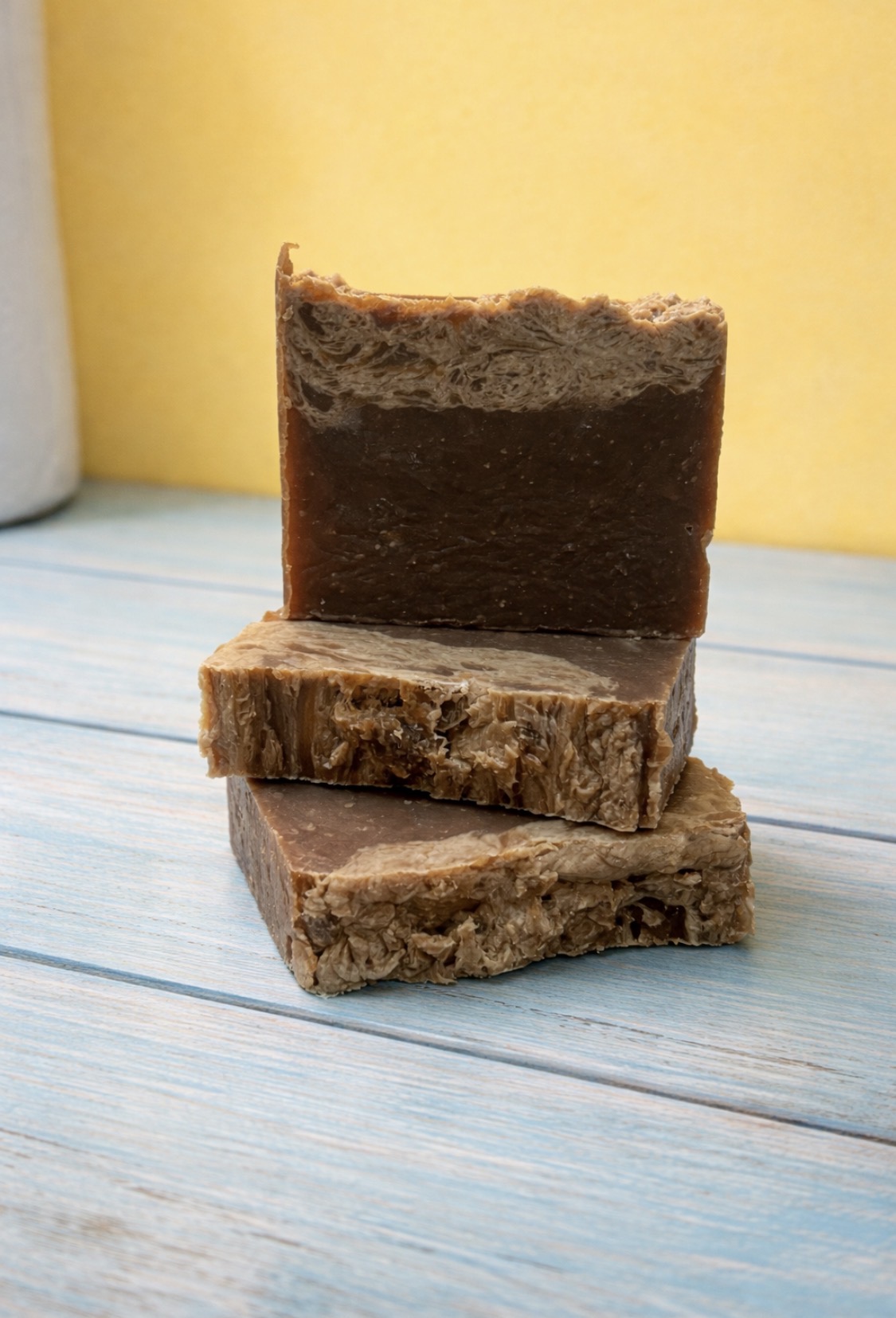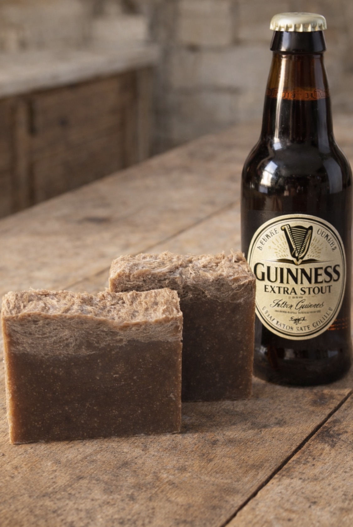 This bar was inspired by a classic glass of extra stout Guinness, with its deep, dark body and that unmistakable creamy foam on top. To capture that look, the soap features a dark base with a lighter top layer, giving it that freshly poured stout appearance.