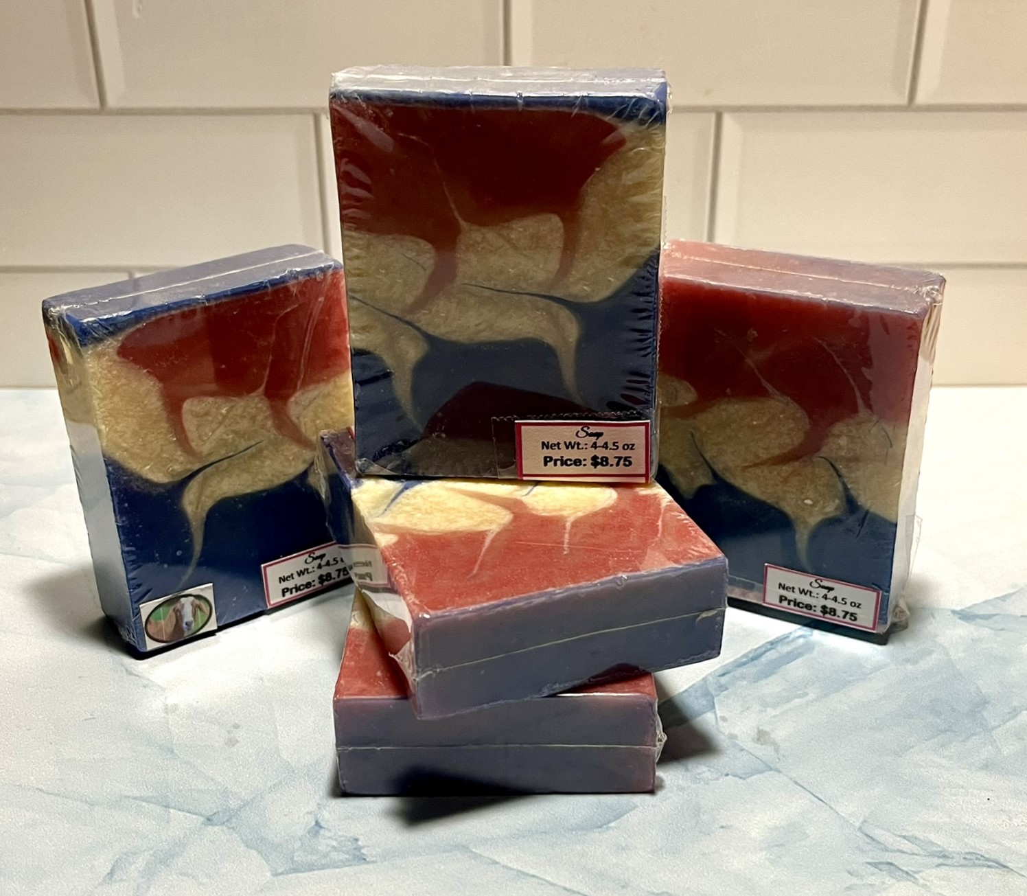 I wanted to create some red, white, and blue soap for the May and July holidays, specifically the 4th of July and Memorial Day. After considering both, I chose to name this soap “Independence Day.”