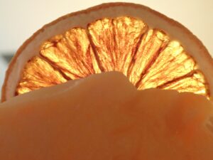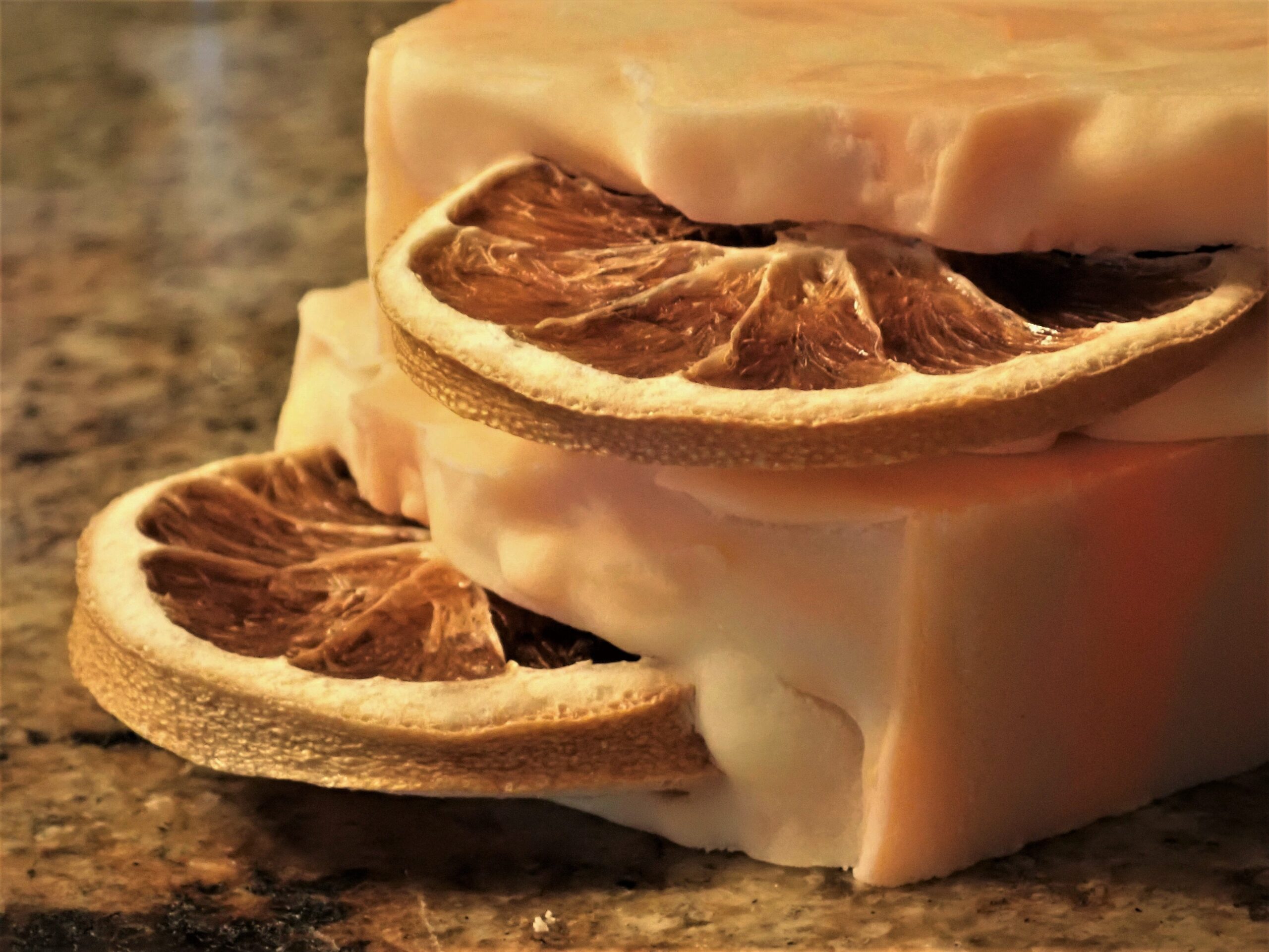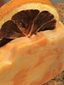 I was curious about dehydrating orange slices and using them as decoration on the top of my soap. Although there’s a soap mold for that, I didn’t like how the imitation soap slices looked—too fake. Everywhere I read on the internet advised against using real dried orange slices because they could potentially scratch the user. The dried orange slice is meant to be removed before using the bar; however, I understand how some might miss that point.