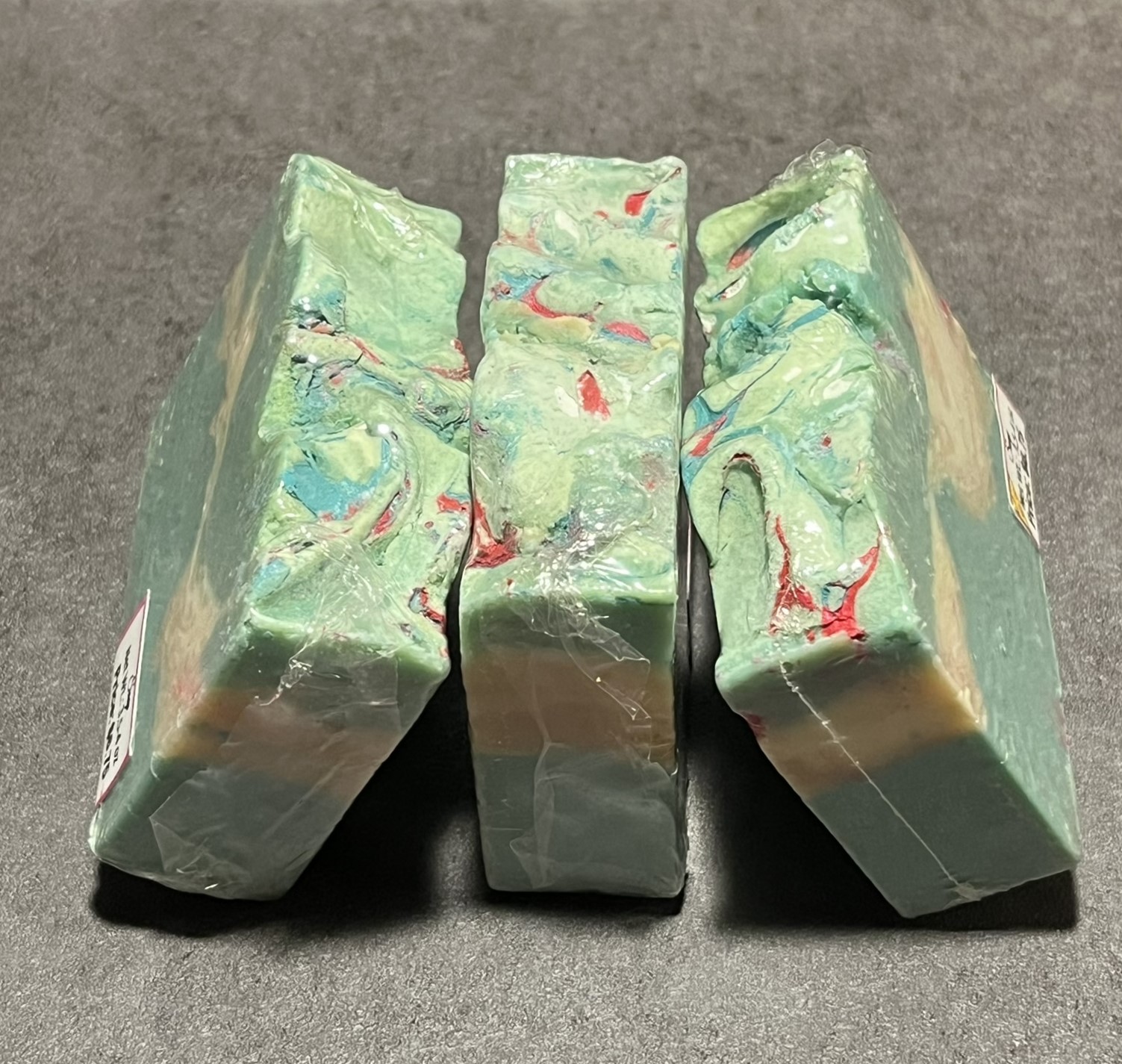 This soap was created using the Layered Soap Technique, which is simple yet effective—pouring multiple colors one on top of the other.