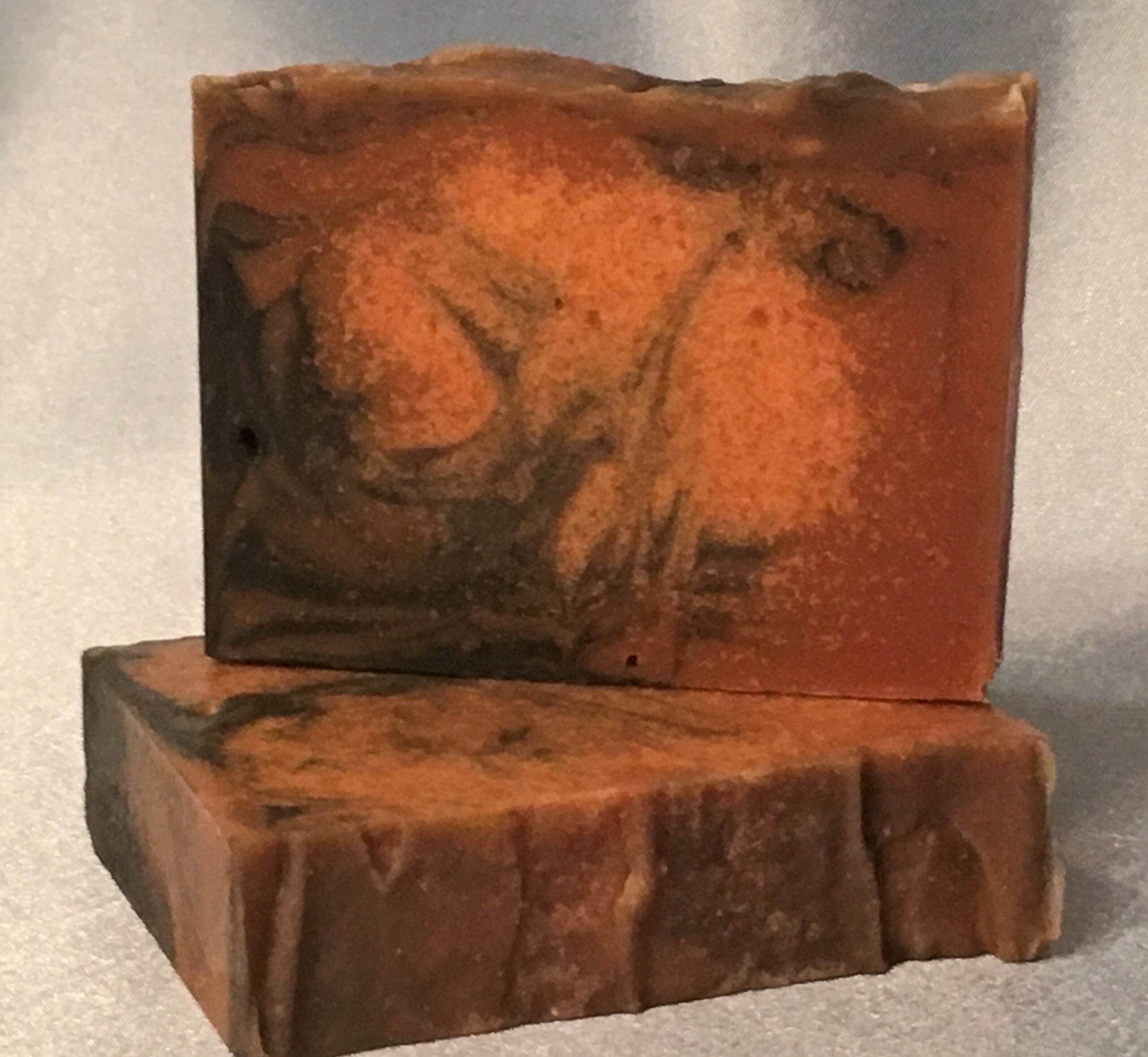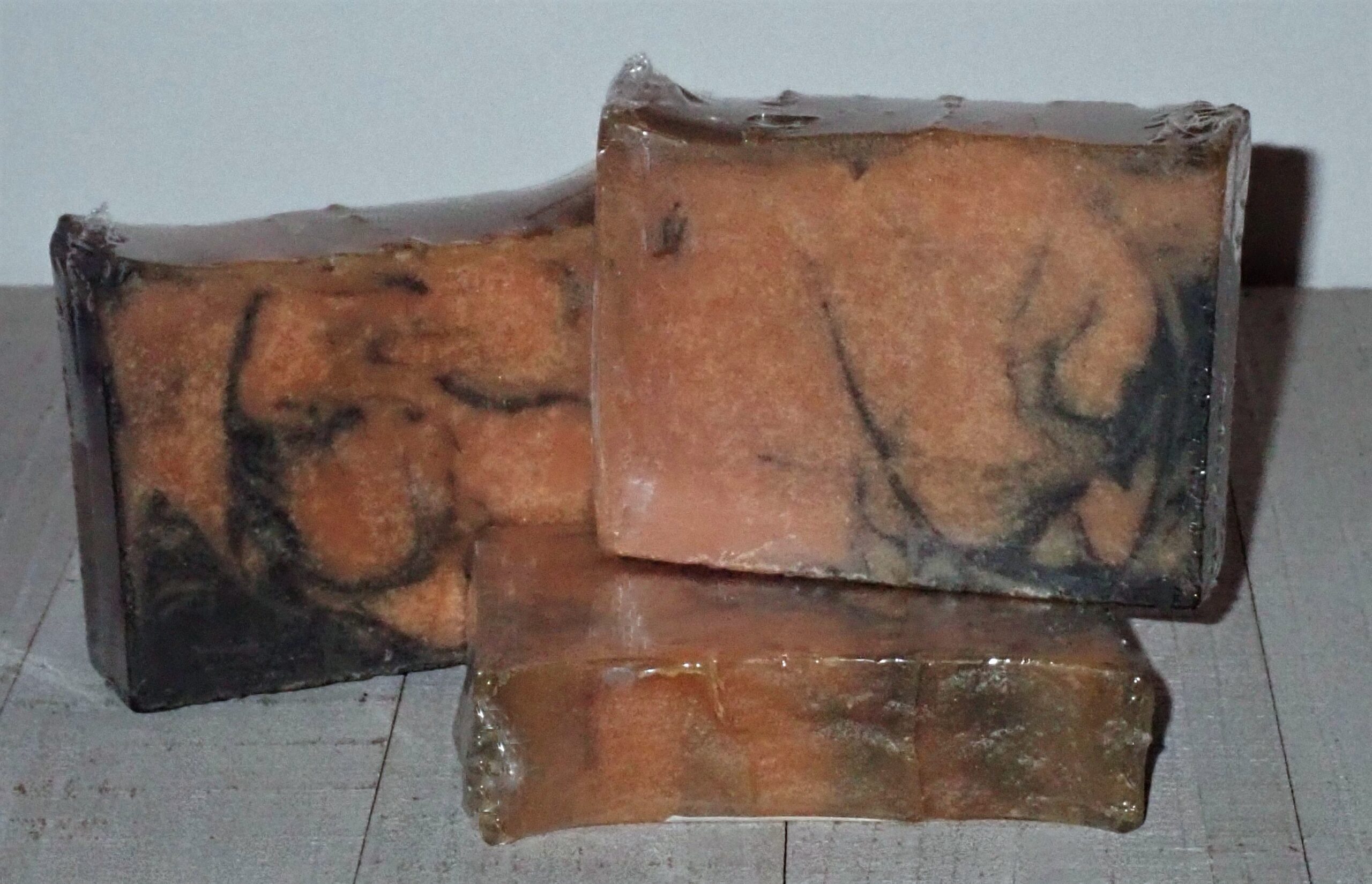 This soap was designed specifically for the face, featuring a mix of unique ingredients: tomato paste, yogurt, Moroccan Red clay, lemon peel powder, and activated charcoal (which gives the soap its bold black accents). Didn’t I say this was my mad scientist soap? 😊