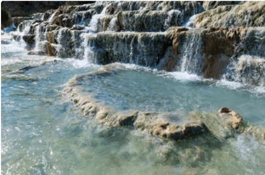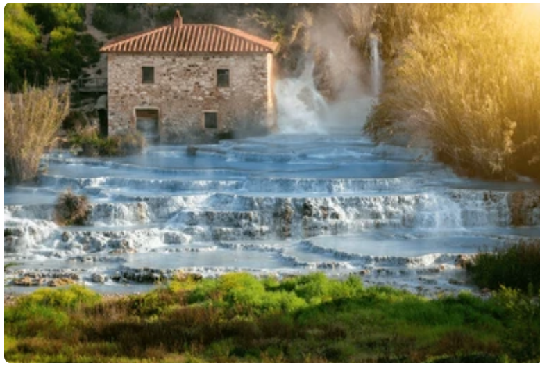 Le Cascate del Mulino in Tuscany, Italy: A natural hot spring with a cascading waterfall, offering a glimpse into the types of warm, mineral-rich waters the Romans cherished.