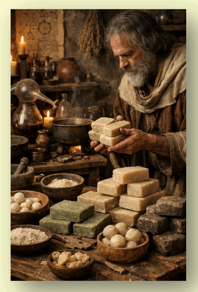 By the third century AD, Zosimos of Panopolis, a Greco-Egyptian alchemist, incorporated soap into his alchemical writings. While his primary focus was on transmutation and the creation of elixirs, Zosimos also referenced the use of alkaline substances resembling soap. His texts reveal that soap-like compounds played a role in alchemical practices in Egypt, indicating that knowledge of soap extended beyond Europe. Zosimos’s work underscores the adaptability of soap formulations and applications, reflecting the diverse scientific and cultural practices of the time.