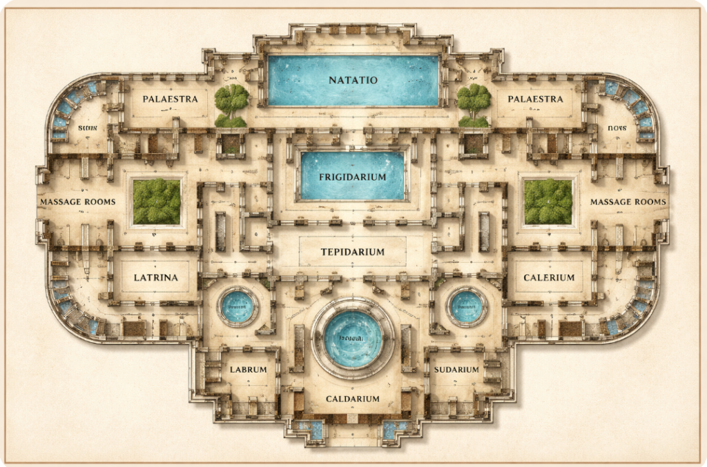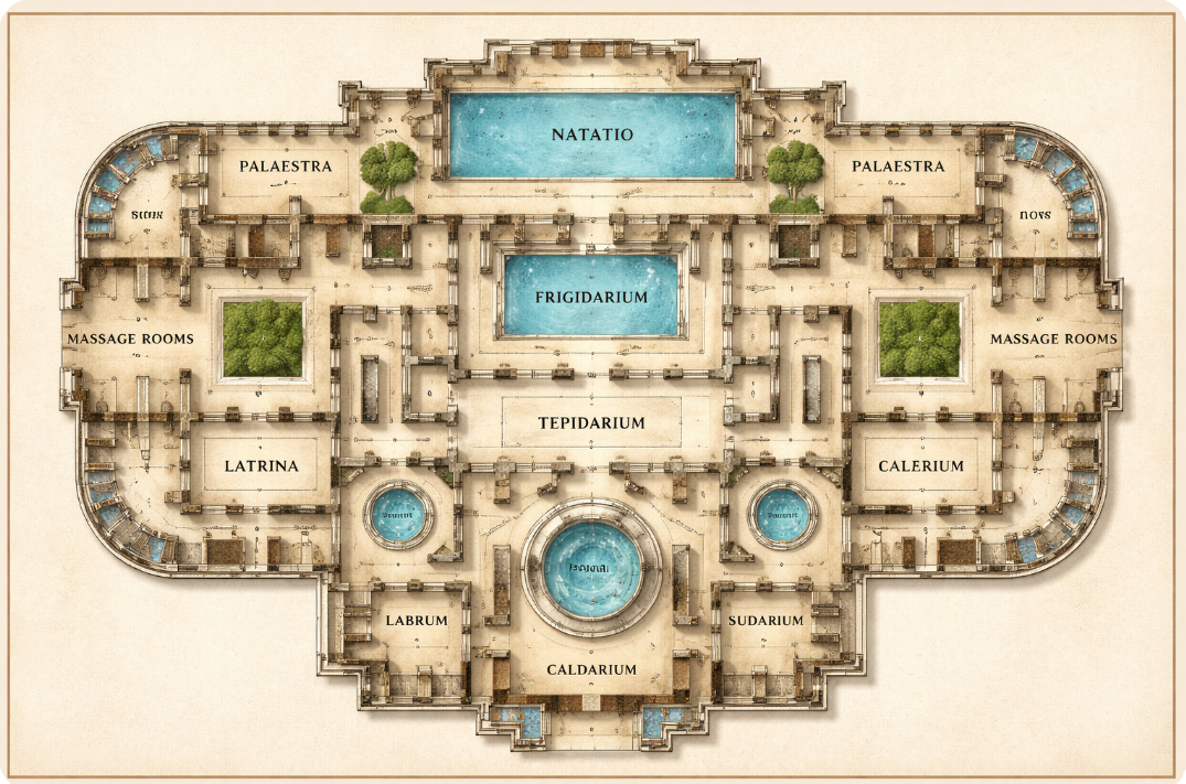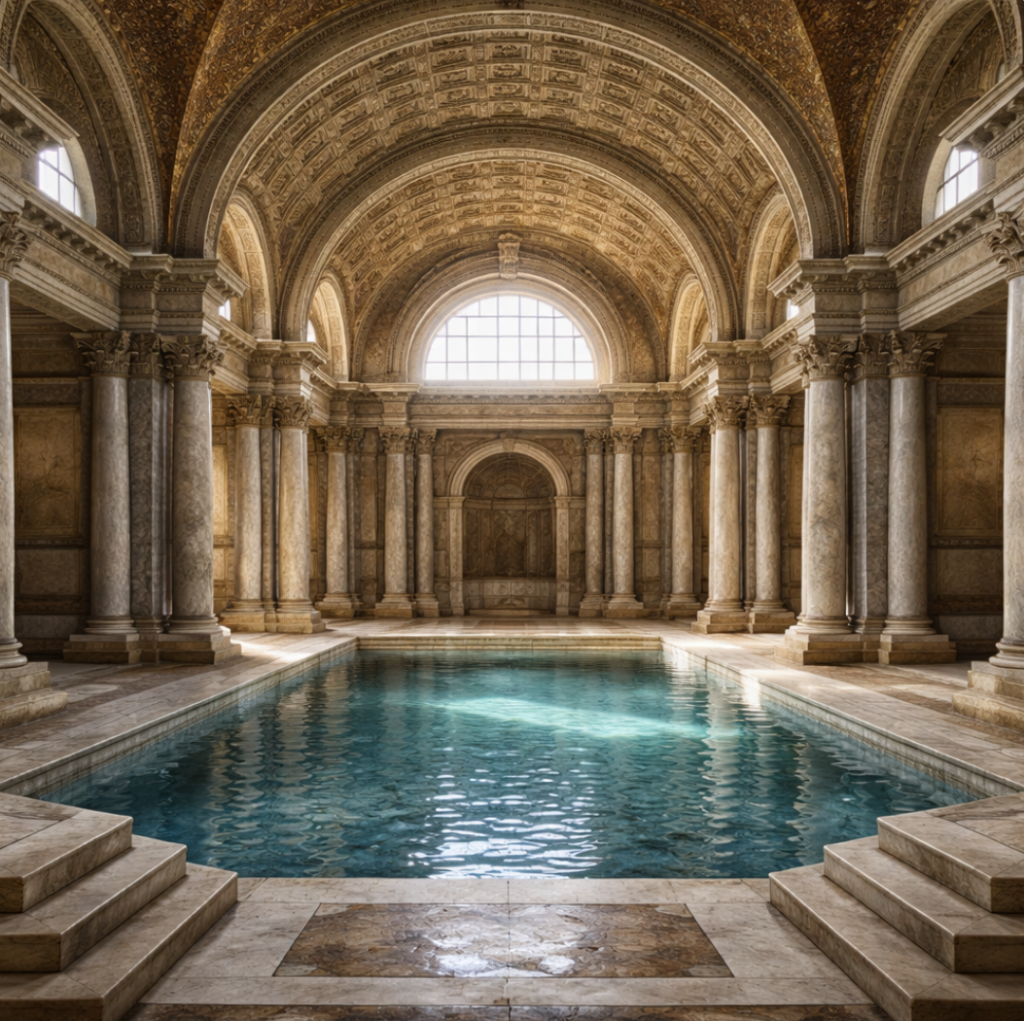 Bathing was an essential part of daily life in Ancient Rome, offering not only physical cleansing but also a reprieve from the demands of society. By the 1st century AD, Roman bathing culture had undergone a remarkable transformation, coinciding with the Pax Romana (Roman Peace), a period of prosperity and stability spanning from approximately 27 BC to 180 AD. This era witnessed significant advancements in infrastructure, including the construction of elaborate bathhouses, alongside cultural flourishing, legal reforms, and the expansion of trade and commerce.