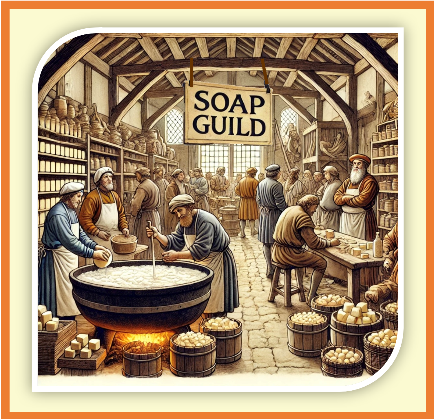 The guilds exercised significant control over the quality of soap, ensuring that it met established standards. However, it would take several more centuries for these guilds to reach the level of power and influence they would eventually hold during the Early Modern Period. While the guild system allowed for some consistency in production, it also meant that soap-making remained largely localized, with the finest soaps—particularly those made with olive oil—still being produced in select regions.